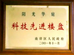 ? 2001年,陽光華庭榮獲“陽光華庭科技先進樓盤”、“陽光華庭優秀住宅小區”、“陽光華庭優秀規劃環境”