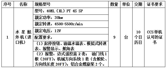 4、中標單位需對招標單位及船東進行培訓、備品備件、主要易損易耗件優惠承諾。