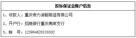 4.3、供應商報價文件資料遞交地點:重慶市南岸區(qū)廣陽鎮(zhèn)明月沱806號 , 重慶帝力游艇制造有限公司辦公樓二樓采購部。
