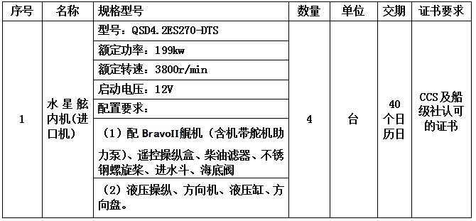 本項目適用于重慶帝力游艇制造有限公司:重慶市港航管理局9米海巡艇主機采購部分,該項已具備招標條件,先對該項目進行單一來源采購招標。