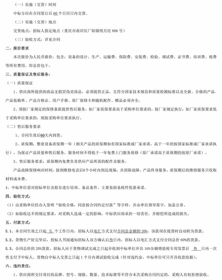 重慶市港航管理局20米工作艇發動機組招標...