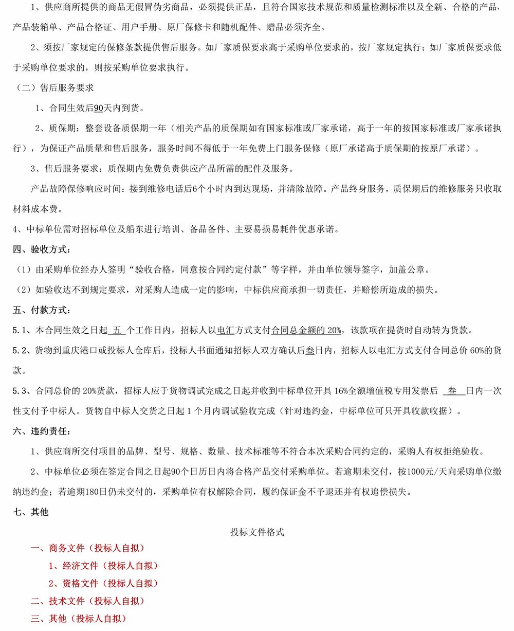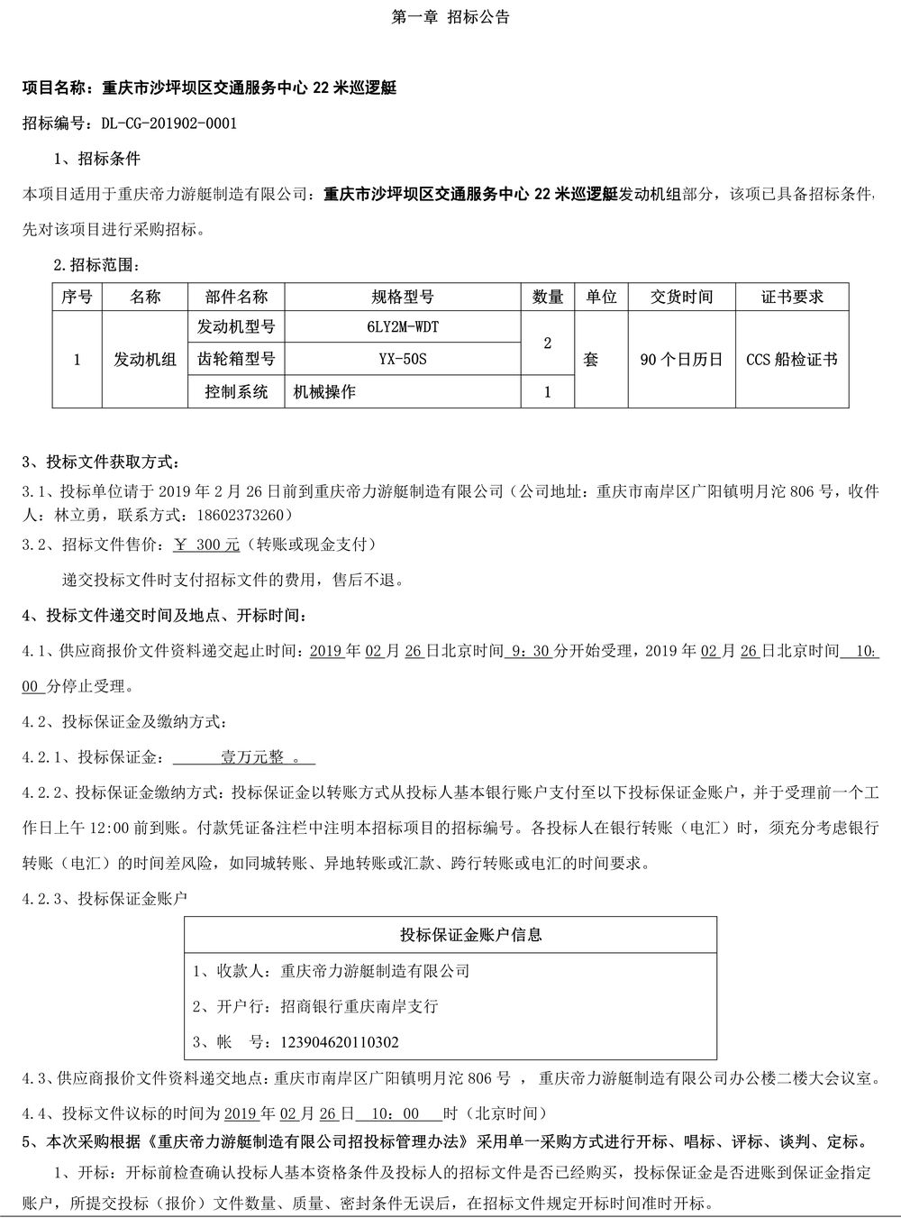 重慶市沙坪壩區(qū)交通服務(wù)中心22米巡邏艇電設(shè)備采購(gòu)招標(biāo)文件