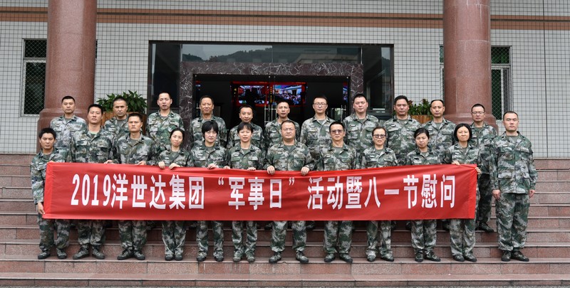 7月23日上午,集團總裁張志興、副總裁張兵、集團黨委書記何長君、集團工會主席陳靜帶領集團本部管理層及公司全體預備役員工來到重慶陸軍預備役后勤保障旅參加2019年“八一”軍事日活動,看望慰問官兵,接受國防教育,慶祝中國人民解放軍建軍92周年。