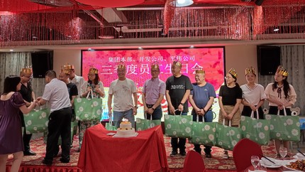 2021年7月15日下午,集團本部、房產公司、平偉公司的全體同仁歡聚一堂,為三季度過生日的12位同事,共同慶祝生日。