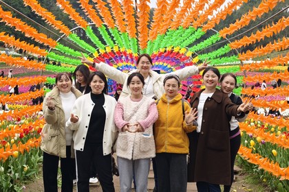 活動伊始,員工們來到了菩提山下開展了趣味十足的團建小活動,大家都表現積極,踴躍參與。小游戲“破冰分組”、“爬山比賽”不僅考驗了員工們的團隊協作能力和反應能力,更讓她們在輕松愉悅的氛圍中放開了束縛,拋去了工作中的壓力,感受到了生活的小確幸。活動之余,員工們來到了長壽湖欣賞五彩斑斕的郁金香花海,層層花海馥郁芬芳,一朵朵花球在風中搖曳輕擺,花姿優雅、色彩繽紛,紅的熱情奔放,紫的高貴優雅,白的純凈溫柔。員工們在花海中拍照留念,歡聲笑語不斷,大家盡情享受著這份來自大自然的美好饋贈。