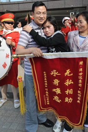 4月8日,洋世達集團公司總裁、凱誼公司總經理楊勝愛心捐款10萬元,用于救助因學習用功過度導致失明的16歲女孩陳心萍,使她得到及時的救治并終于重獲光明。25日下午,復明后的陳心萍和母親特別請來一支鼓樂隊,敲鑼打鼓來到“洋世達?圣天湖”售房部,將一面寫有“無私相助  永生難忘”的錦旗送到楊總手中。得知接錦旗的就是她們母女一直想見的恩人時,陳心萍的母親撲通跪到地上,連聲說:“你是我家的恩人呀”,楊總急忙上前扶起她,并熱情接待了母女倆。
