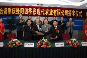 本次簽約儀式由南岸區人民政府副區長唐昕主持,共青團中央國際項目合作中心、重慶市農業綜合開發辦公室、市農工委、市農業局、共青團重慶市委等單位的相關領導,以及中共南岸區委、區人大、區政府、區政協主要領導及相關部門領導,洋世達集團公司全體領導參加儀式,共同見證了一個由中日合資組建的現代化農業企業的誕生。