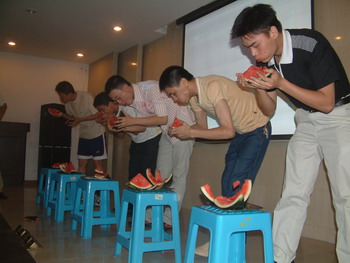 座談會上,集團(tuán)公司領(lǐng)導(dǎo)通報了公司有關(guān)工作情況,并向大家表示節(jié)日的祝賀。大家紛紛表示,要干好本職工作,決不辜負(fù)領(lǐng)導(dǎo)的厚望。 隨后,進(jìn)行了軍歌大家唱和吃西瓜比賽。個個拿出看家本領(lǐng),掌聲、歡笑聲、吶喊聲、加油聲此起彼伏,將整個活動推向了高潮。
